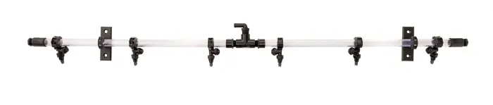 This system features a three-row configuration, ensuring complete coverage and a thorough rinse from every angle. Integrated proportioning valves provide precise control of water flow, optimizing the rinsing process for effectiveness and water conservation. The sturdy mount ensures easy and secure installation, allowing the rinse bar to seamlessly integrate into your car wash system.